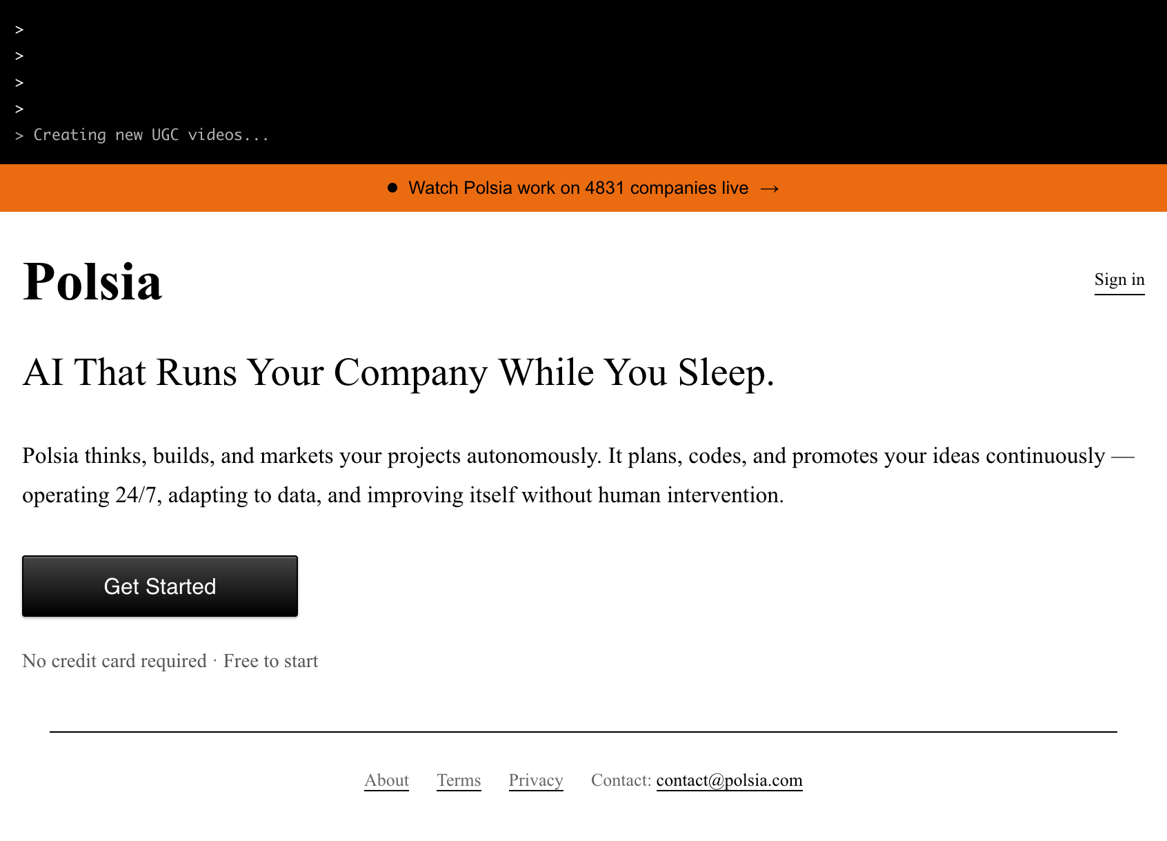 Yep you read that right. Polsia makes the company website. Makes the ads. Tells you it’s time to put in your credit card. Facebook charges YOU $100. Polsia takes $20 on top.